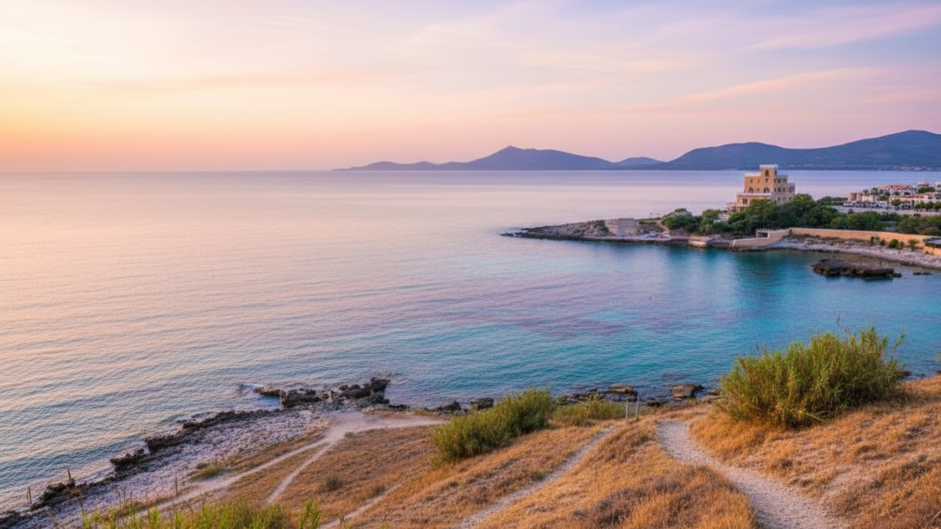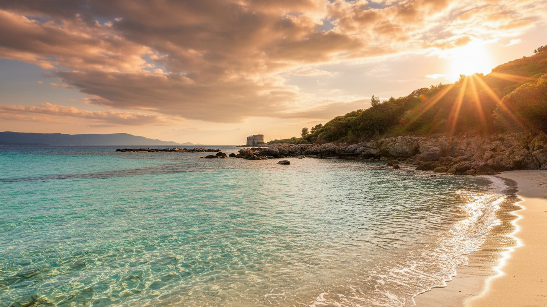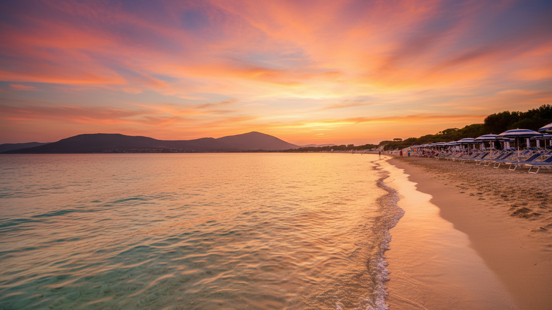 Una spiaggia tranquilla e panoramica, ideale per rilassarsi e godersi il mare cristallino.